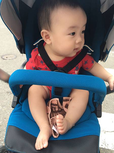 小孩們很愛把腳ㄎㄨㄟˋ在推車槓槓上